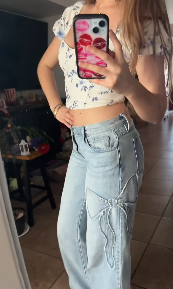 Elevate your style with our Bow Jeans —comfortable and stylish jeans that balances comfort and style. Perfect for lounging or stepping out, it’s the go-to piece for making a statement.