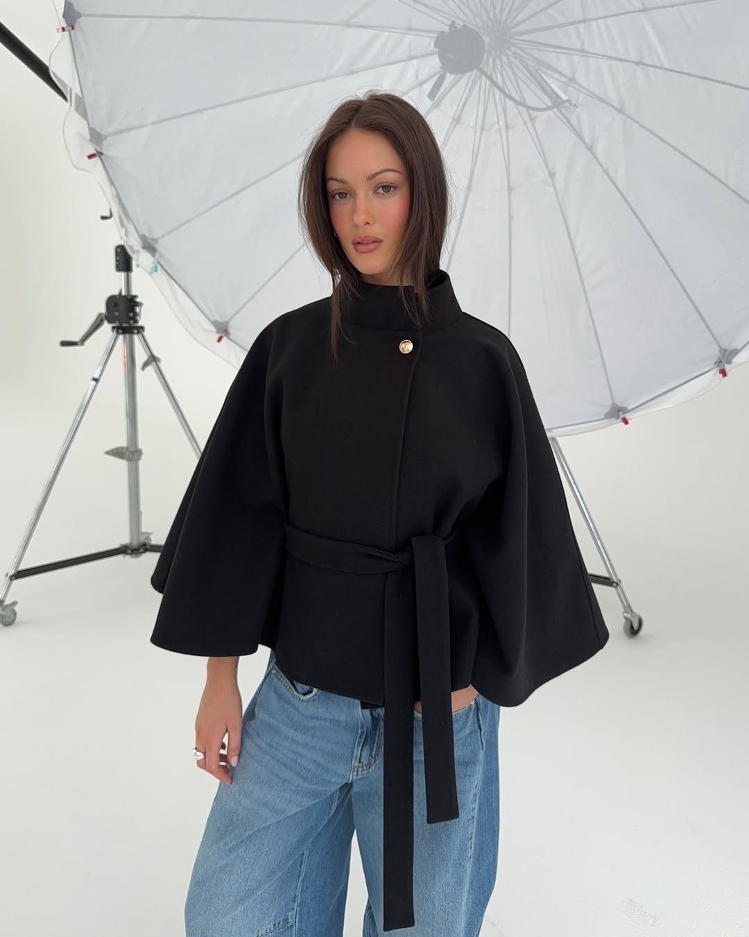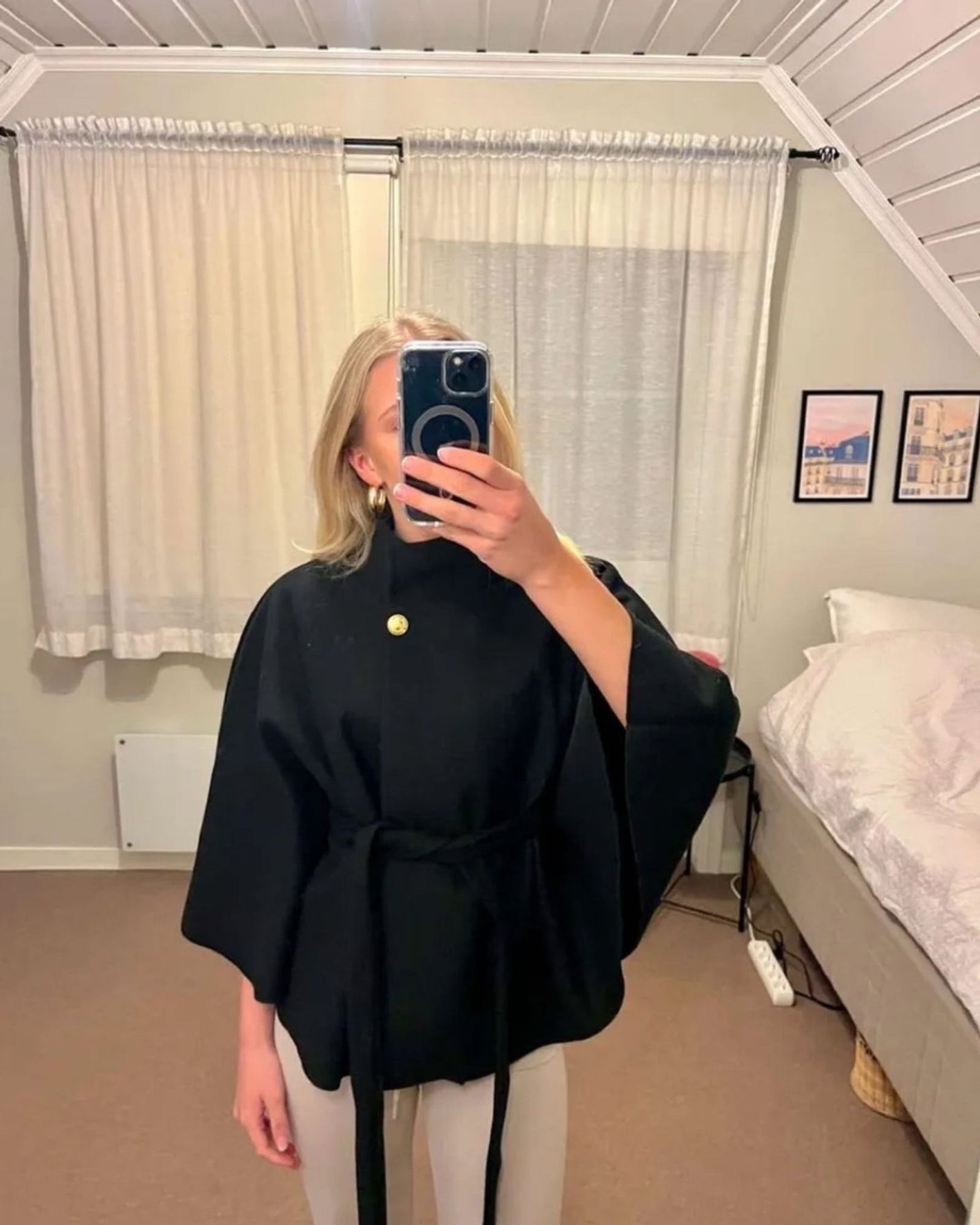 The Fancy Poncho Jacket is made from a soft, breathable fabric, ensuring comfort and effortless elegance.