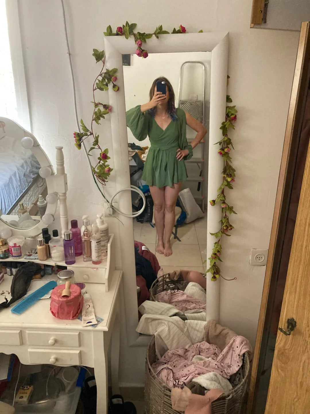 We recommend hand washing your dress in cold water and laying it flat to dry. Avoid using bleach and ironing directly on the chiffon sleeves.