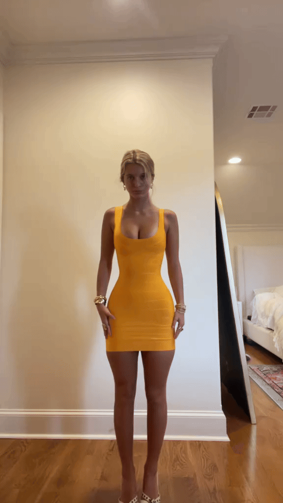 Our Mini Bandage Dress fits true to size, so you can order your usual size.