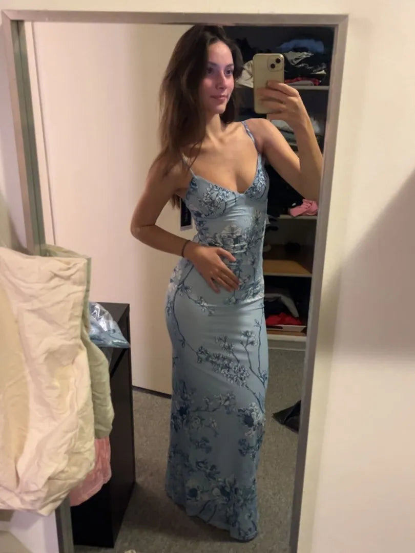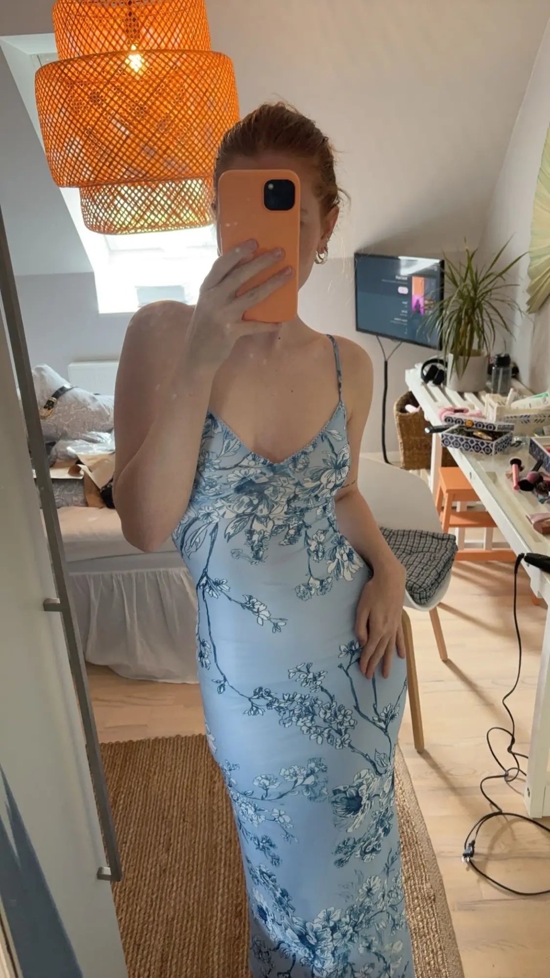 This dress features a stunning floral pattern on a soft, flowing fabric that drapes beautifully over your curves. Perfect for any occasion, this dress combines elegance and comfort effortlessly.